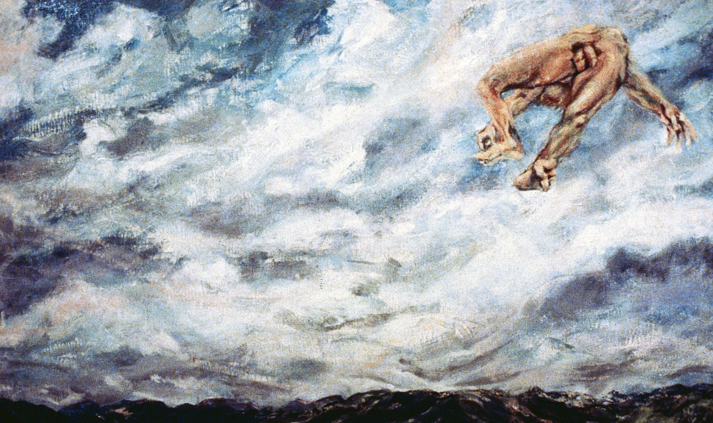 “Falling,” 40”x72” 1985 oil on linen Aviva Rahmani.