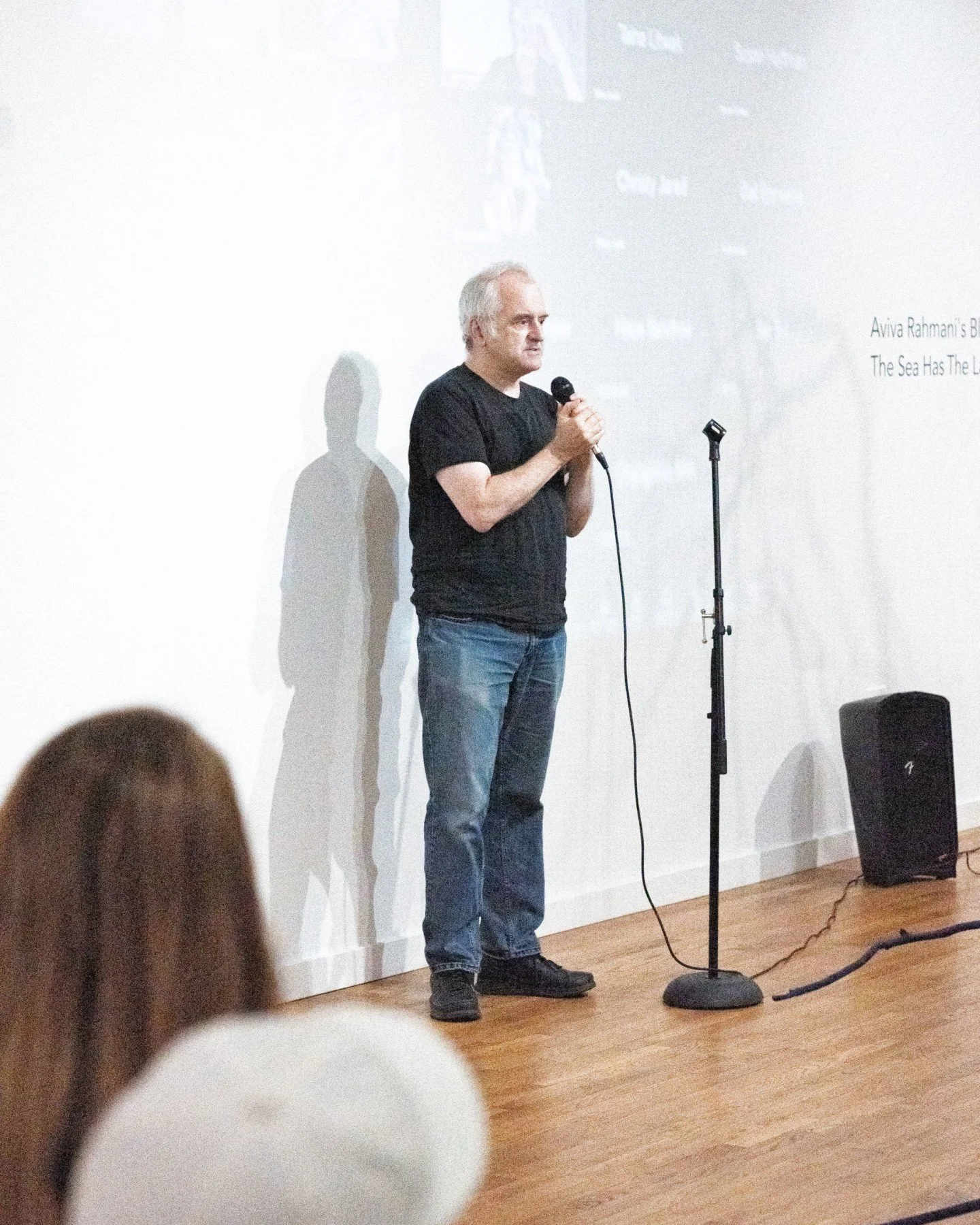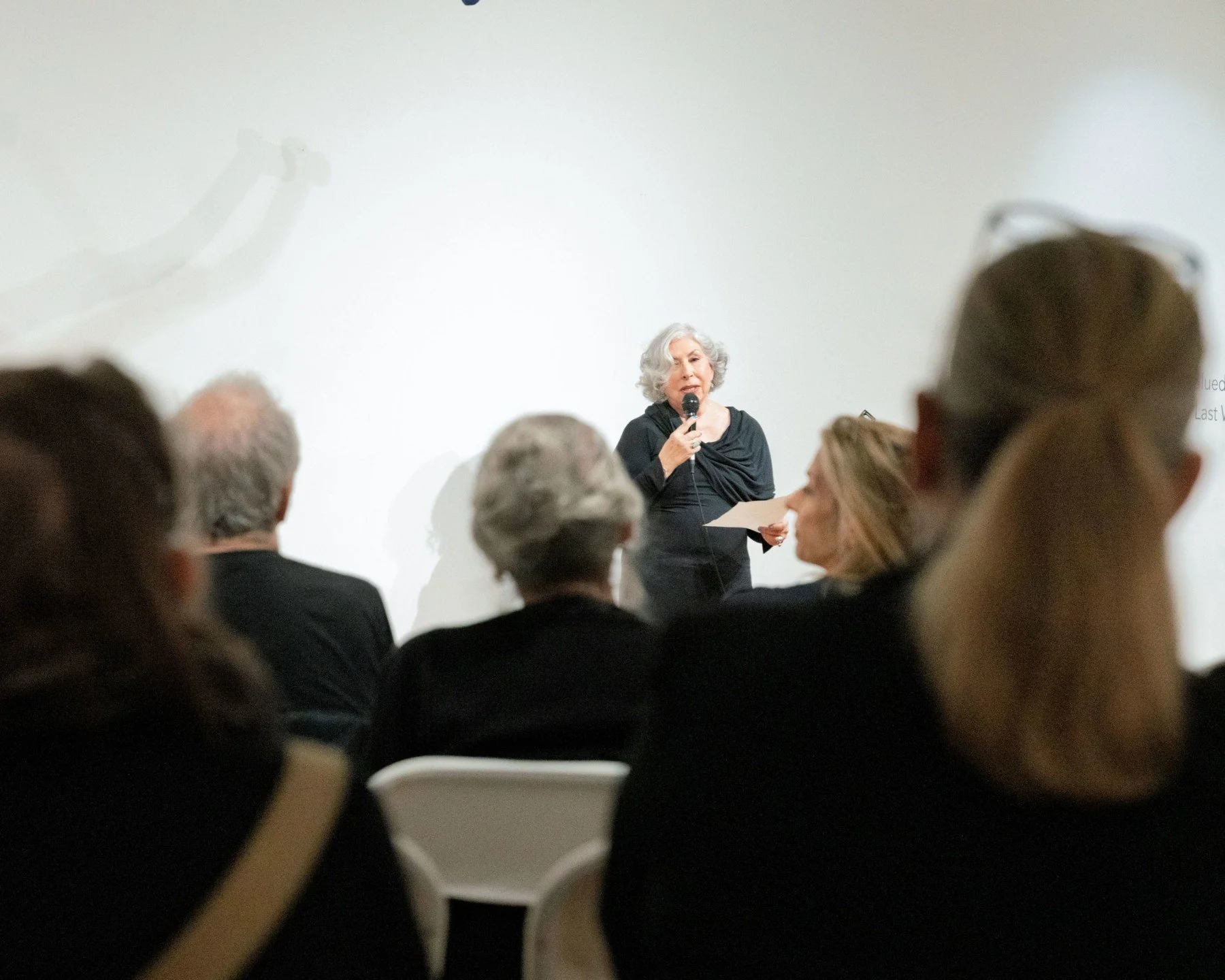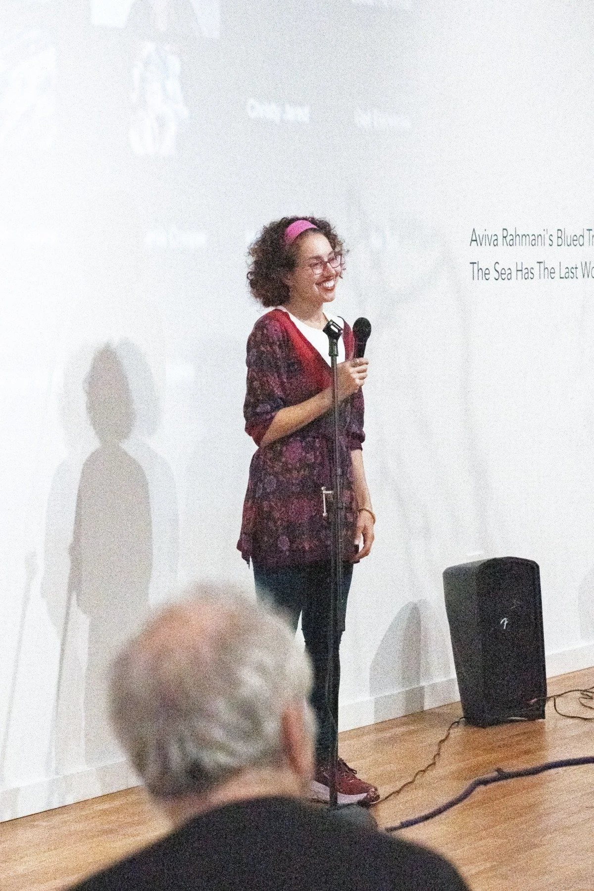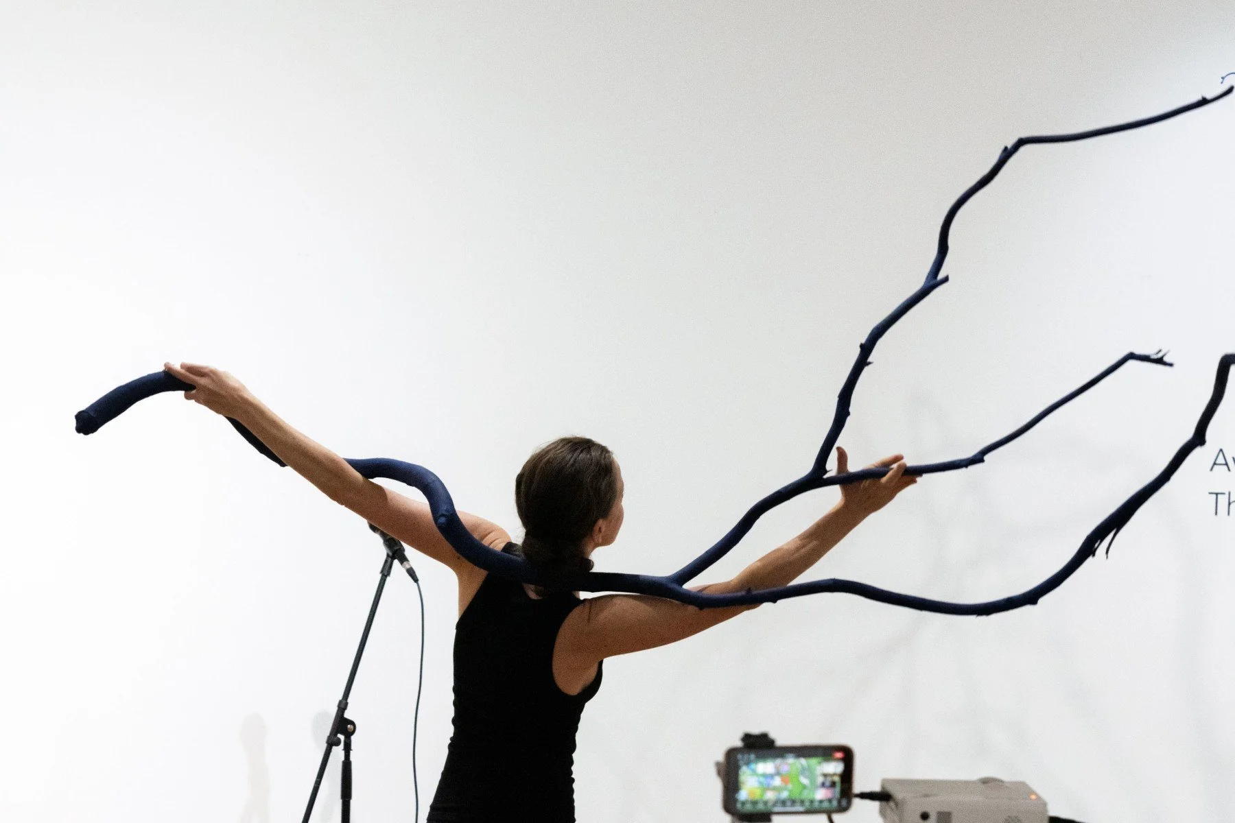 In late October, Anita Rogers Gallery hosted Aviva Rahmani's Blued Trees (2015 - present), her collection of embedded dispatches from the front lines of ecological conflict. Rahmani presented excerpts from her Blued Trees opera with dancer Rishauna Zumberg, pianist and arranger Luka Marinkovic, and soloist Alison Cheeseman. Rahmani then moderated an international participatory streaming event to judge a fossil fuel executive and his wife for ecocide– what is the extent of liability?